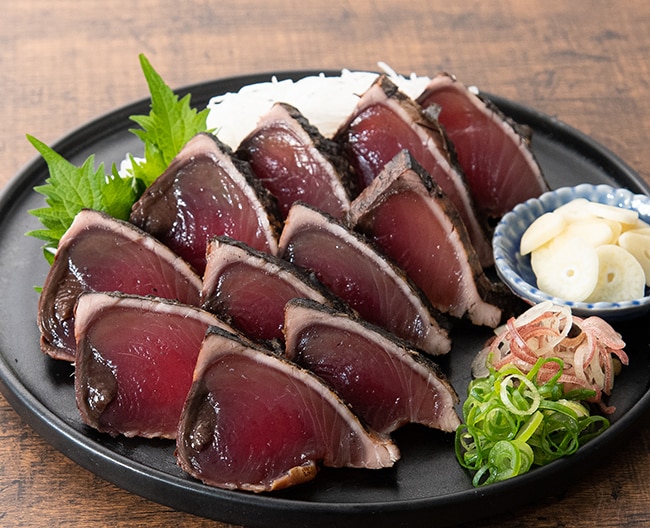 藁をふんだんに使用した鰹のたたきは香り豊かでうまみを一層引き立てた至福の一品です。