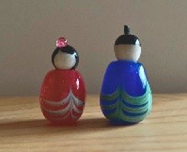 ガラスの色付けから行う、工房ならではのとんぼ玉ひな人形。