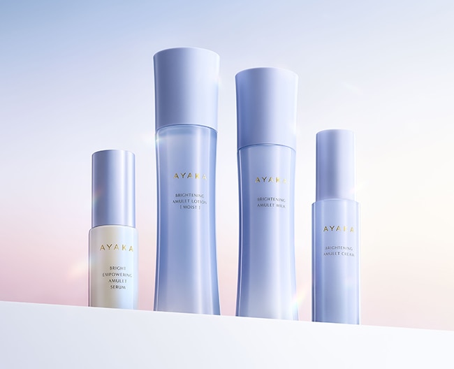 〈AYAKA〉は50代を中心としたエイジング世代に、前向きに年齢を重ねていく「後押し」となるスキンケア・メイクアイテムを展開するブランドです。そんな「AYAKA」より、部分的な美白ケアだけではなく基礎美白力ケア*1でハリと透明感のある素肌作りを目指す「ブライトニング アミュレット シリーズ」が新登場!