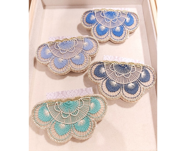 南米パラグアイのレース“ニャンドゥティ”の技法を使い、日常に使えるアクセサリーや雑貨を制作。一見刺繍のように見える布の上でレースを作る珍しい技法です。