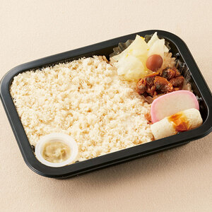 | 数・内容 | 1食(茶飯・おぼろ・竹輪・ゆず大根漬・あさり佃煮・蒲鉾・わさび漬・小梅漬) |