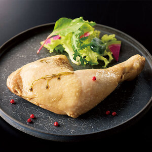 • ジューシーな鶏もも肉のコンフィです。しっとりとした柔らかな食感に仕上げました。