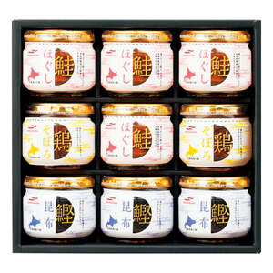 | 数・内容 | 鮭ほぐし45g×4、鶏そぼろ45g×2、鰹昆布45g×3 |