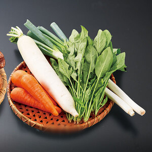 | 数・内容 | 大根1本(千葉県 他)、ほうれん草約200g(埼玉県 他)、長ねぎ2本(千葉県 他)、にんじん3本(北海道 他) |