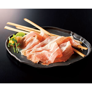• 黒豚のもも肉を18カ月間も長期熟成させた本格的な生ハム。