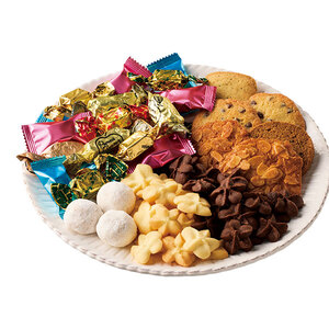 | 数・内容 | りんごチョコレート30g、梨チョコ20g、紅茶・抹茶・胡麻チョコ×各12g、ミルク・ビターチョコ×各16g、プチサブレ・チョコサブレ・アーモンドボールクッキー×各30g、チョコチップ・アーモンドチュイールクッキー×各2枚、紅茶・珈琲クッキー×各1枚 |