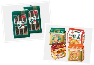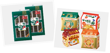 <サッポロ一番>しょうゆ味(5食入)、<マルちゃん正麺>味噌味(5食入)・豚骨味(5食入)、<日清>チキンラーメン(5食入)のうちから2袋