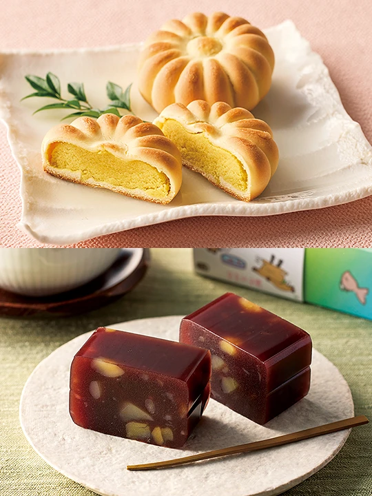 60年近く愛され続けている奈良銘菓「菊之寿」も、「ソフトクッキーのようにほんのり甘い生地と、ほくほくの黄身餡がたまらない」と評判のひと品。練乳を加えた生地は優しい甘さ。白小豆と福白金時豆をブレンドした餡は、濃厚ま風味でありながらもあっさりとした、どこか懐かしい味わい。例えるなら「ケーキのような和菓子」で、お茶はもちろん、コーヒーにもよく合います。