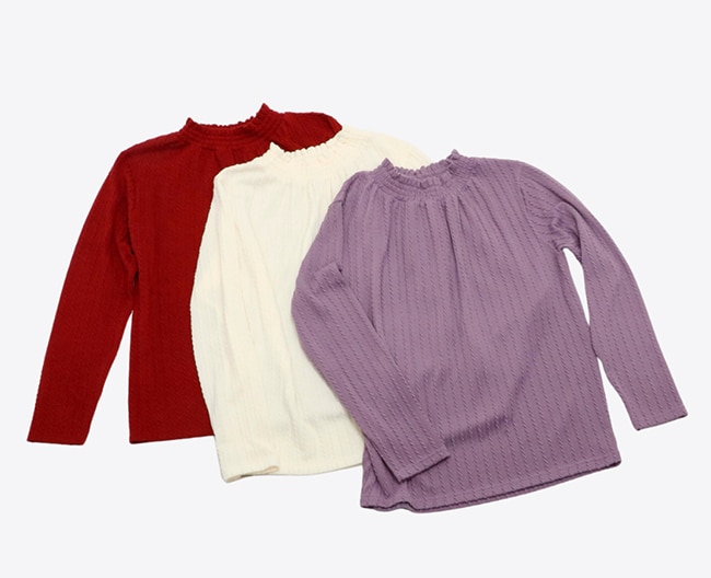 (ポリエステル97%・ポリウレタン3%/サイズ:M・L/ホワイト・パープル・ワイン) 各14,300円