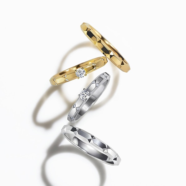 人生を歩む道を照らす“輝き”を表現したリングに、センターダイヤモンドをセッティングした新モデルが登場。放射線状に一周取り囲む光のデザインは、24時間共に在るふたりのこれからを祝福します。