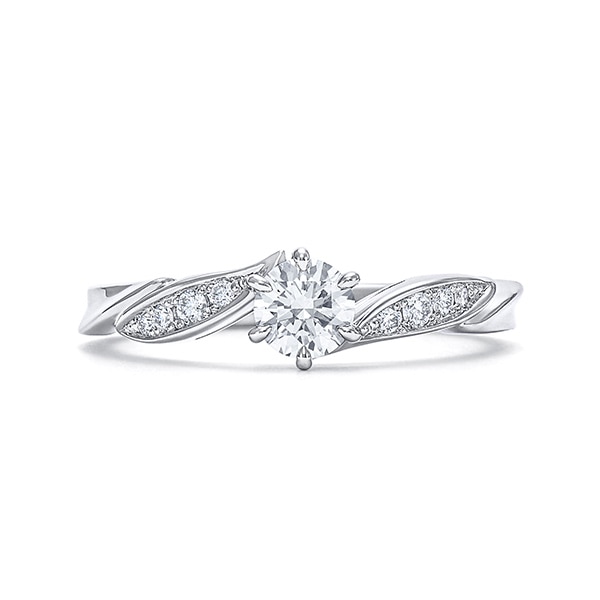 シンプルを極めたリングの側面には、ダイヤモンドの精が伸びやかに舞う優美なラインを表現しています。