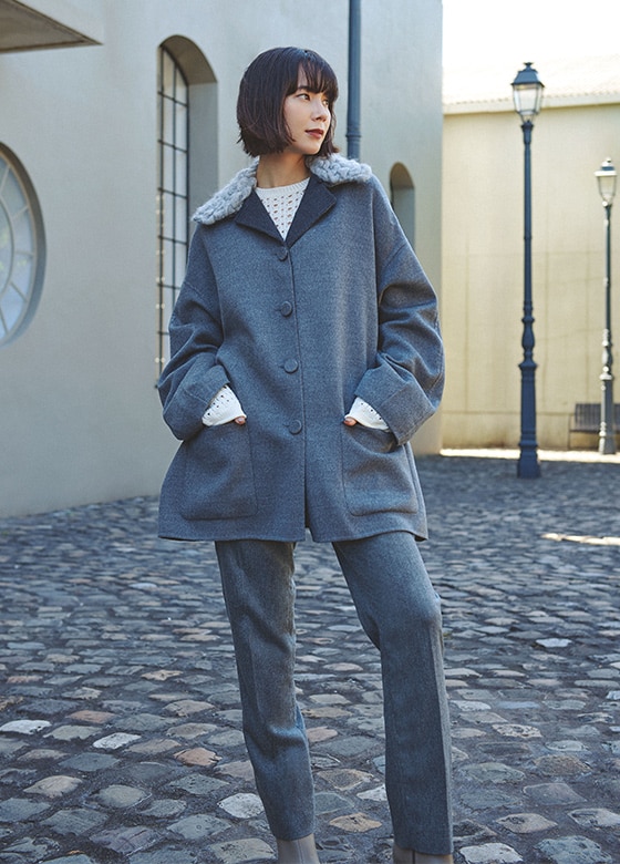 やわらかく包み込まれるようなダブルウールのコート。取り外し可能なモヘアの襟は気分やスタイルに合わせて。