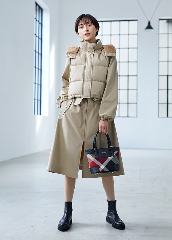 ダッフルコートをアイコニックなクレストブリッジチェック柄でアレンジ。