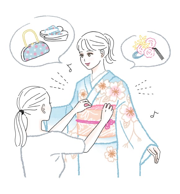帯やバッグ、髪飾りなどの小物のご相談もお任せください。