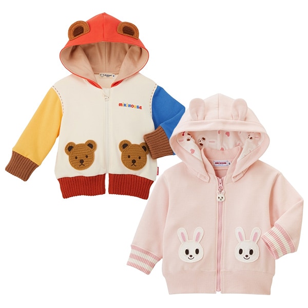 うさぎやくまの耳のついたパーカーでかわいくキャラクターに変身!