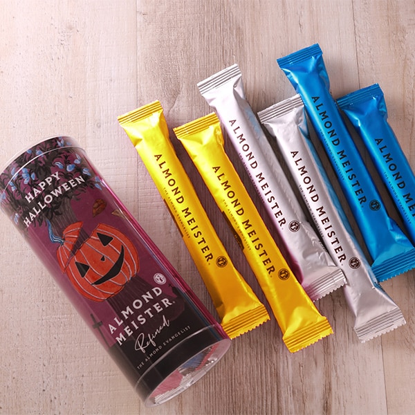 アーモンドをたっぷりと使って風味豊かに焼き上げたザクザク食感のアーモンドクロッカン生地で、クリーミーなキャラメルショコラをサンドしたアーモンドマイスターをハロウィン限定のパッケージに詰合せました。