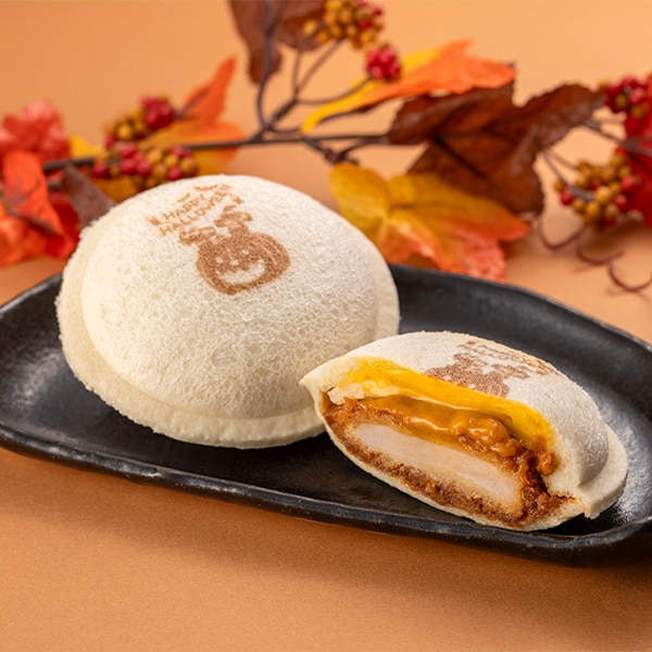 まい泉自慢のやわらかなヒレかつと、オリジナルの甘めのとんかつソースと、とろーりとしたたまごをはさみこんだ、丸いかたちのサンドイッチです。ハロウィーン期間限定で「新宿高島屋TTモンスター」をプリントしました。