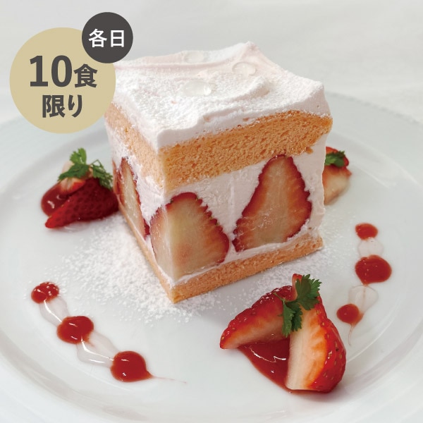 スフレスポンジもバラ色、ベリー風味のクリームもバラ色の、バラ色づくしの熊本県産いちご「ゆうべに」を使用したショートケーキ。〈ドリンク付〉