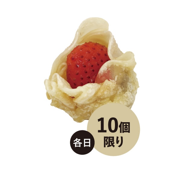 餃子の皮にあんこと熊本県産のいちごを包んだ天ぷらです。甘酸っぱい味わいをお楽しみいただけます。