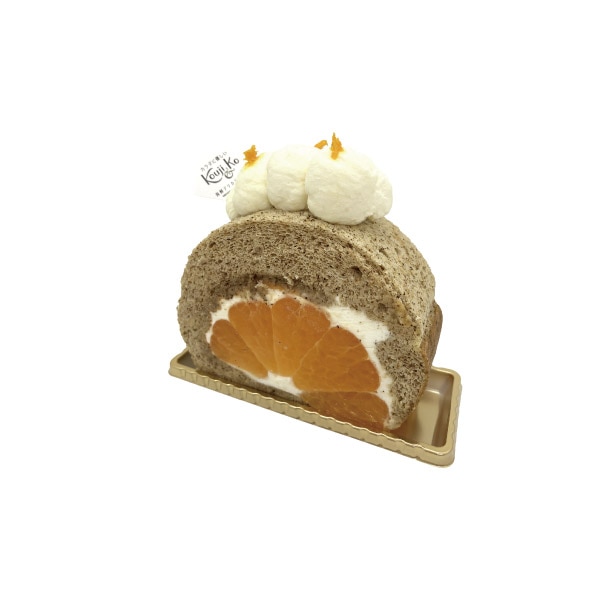 甘酒と練乳のクリームと熊本県産「デコポン®」を、碁石茶と米粉の生地で包み込んだロールケーキです。