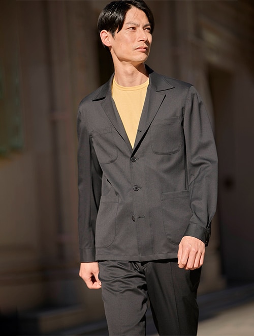 スポーティウールが生み出す新感覚セットアップ。軽くストレッチ性ある快適な着心地、通気性、速乾性がありビジネスシーン活躍の1枚。