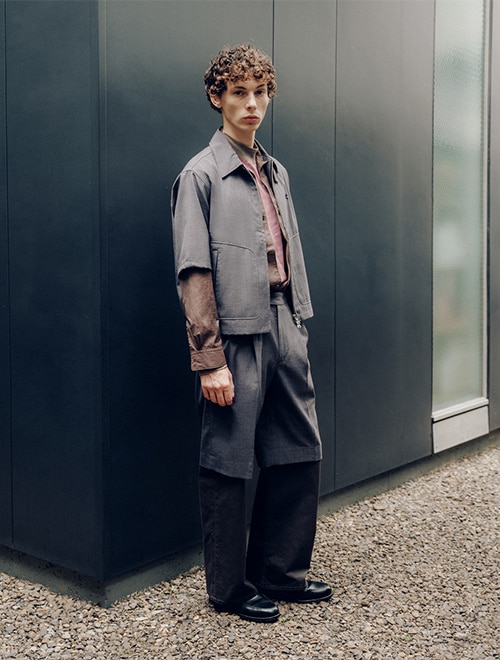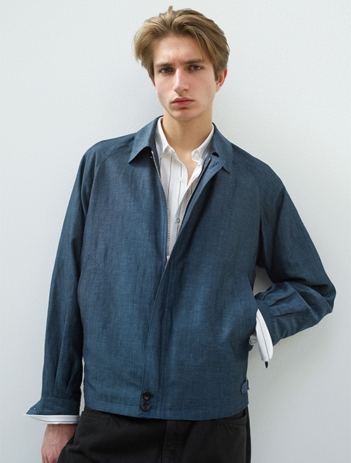 イタリア「ZIGNONE」社のポプリン素材を使用したブルゾン。ウールとリネンを用いることで、ソフトな風合いと清涼感を両立し、奥行きのある色合いと上品な光沢感が魅力。ヴィンテージのスイングトップをベースに、ほどよくゆとりを持たせたサイズ感に仕上げた一着です。