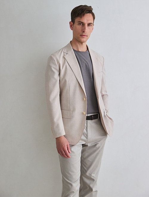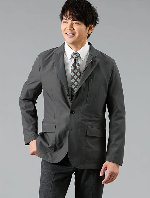 遮熱機能を備えたオリジナル機能性シリーズ「SUNSHADECOOL」の夏向けメッシュブレザー。軽やかでさらっとした着心地と端正な佇まいを両立し、暑い季節でも快適に着用できます。さらに、撥水・防シワ性も備えており、オン・オフを問わず活躍する、大人のためのサマーブレザーです。