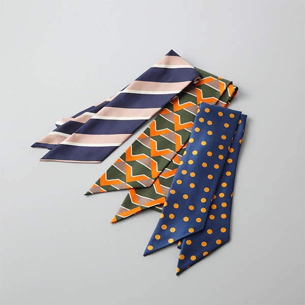 ネクタイよりも気張らず、気軽に取り入れられる。エレガントな雰囲気を惹き立たせる今の時流にピッタリな巻き物です。