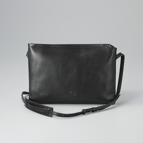 サケットシリーズの定番、シンプルなサコッシュ。Tシャツやジャケットの上から着けても服装の邪魔をせず、7段階で長さの調整が可能。シンプルな作りながら、内装には小さなポケットが備わっており、鞄の中でバラつきやすい小物を収納できるため、日常使いはもちろん、旅行先でも活躍します。