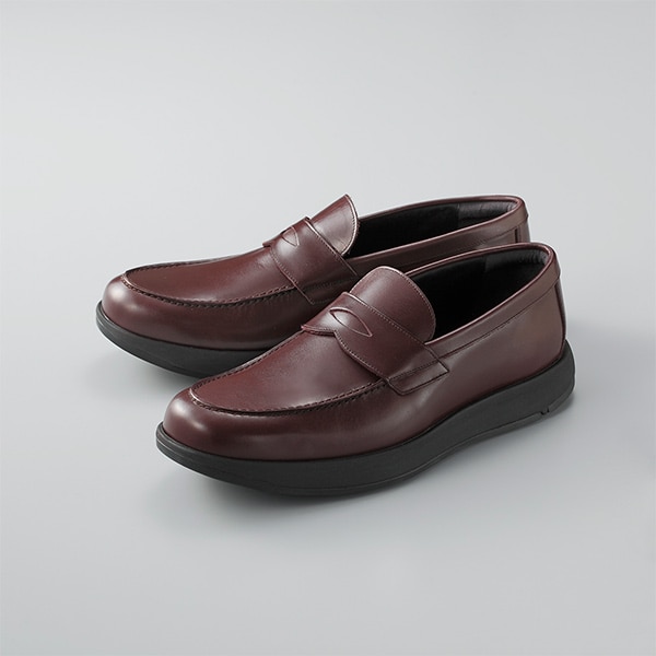 国産スムースレザーの光沢により、抜群にドレッシーな佇まい。高い衝撃緩衝性を実現するゲルなどハイテクな仕上げ。