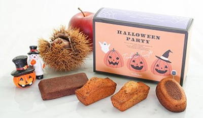 季節限定のケイクキャラメルマロン、ケイク・ア・ラ・ポンムほか人気の焼菓子をハロウィンパッケージに詰合せました。