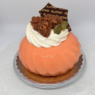 かぼちゃのムースをバニラのムースで包みました。チョコクランチが食感と香りのアクセントです。