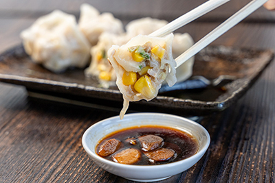定番水餃子「えび」や「キャベツ」に加え、「コーン」や「キムチ」など個性派水餃子をご用意。