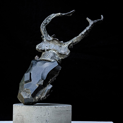 「Lucanus Kraatzi -クラーツミヤマ-」 w25×d13.5×h23cm(台座14×14×h5cm) 黒御影石、ブロンズ