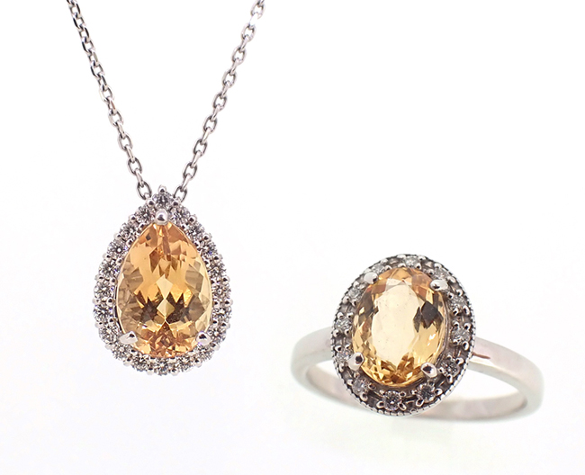 左)トパーズペンダント(Pt、トパーズ1.78ct、ダイヤモンド計約0.17ct)286,000円