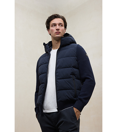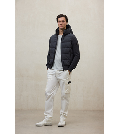 マットでクリーンな表情の素材と軽量で暖かさに優れた中わたを採用、保温性を保ちながらボリューム感を抑え、スタイリッシュ&スマートに仕上げています。