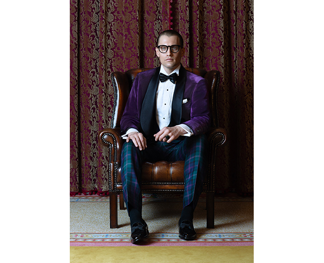深く濃密でアメジスト色の服地と、端正なシルエットが、今宵の主人公に究極のエレガンスを纏わせる。