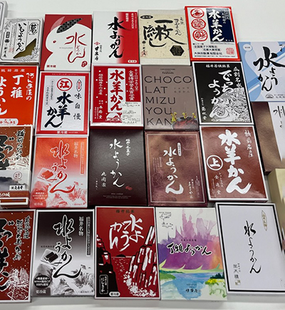 一枚流しの小さいサイズをなるべくご用意させていただき、何と23店舗の水ようかん(丁稚ようかん)が一堂に会します。