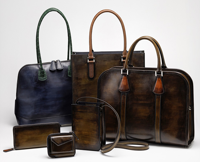 ブランドを象徴する、堅牢な美しい「ピットヌメ革」の縦型トートバッグや革小物、さらに新作のクロコダイル型押し(牛革)のシリーズも登場いたします。