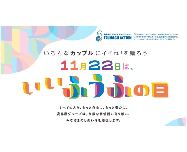新宿高島屋では、11月22日の「いいふうふの日」にちなみ、11月12日(水)から25日(火)までの2週間、「さまざまなふうふのかたち」を考えるきっかけとしていただきたいという想いから、