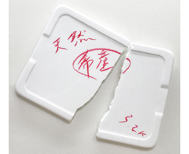 「 KASHOUMON -(C8H8)n- 32 」 W52×D3×H41cm  大理石、オイル