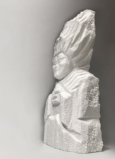 今展で中心となるのは、発泡スチロールを精巧に模して造られた大理石の彫刻作品とインスタレーションです。
