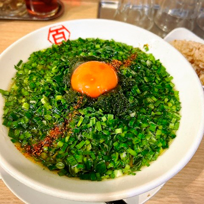 ニラを約1束とたっぷりと使ったニラソバは、汁なしの太麺まぜそばまたは汁ありの細麺ラーメンから選べ、和牛油の甘みと絡み合い 箸が止まらないひと皿。