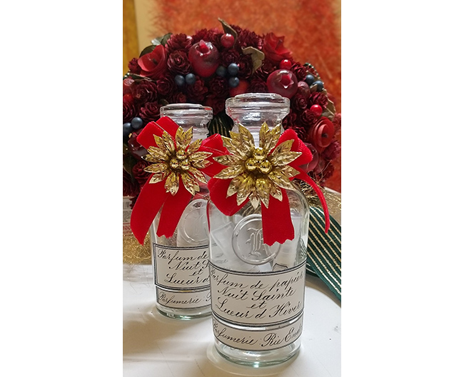 その中に、クリスマスシーズンにちなんだ2種類の香りが入った小さなスプレーボトルが2本セットされています。