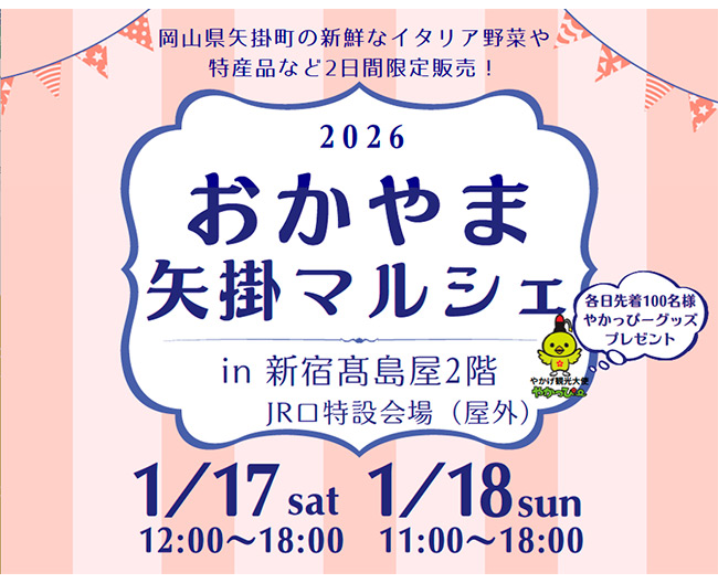 岡山県矢掛町の新鮮なイタリア野菜や特産品などを、2日間限定で販売いたします。