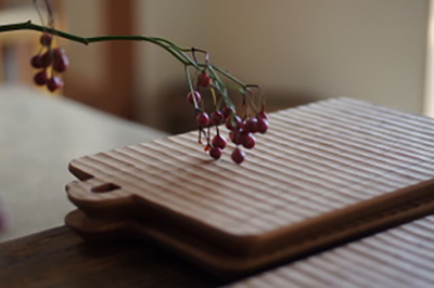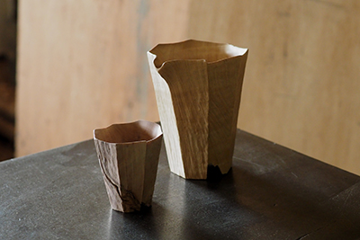 三輪真一の作品は、天然木を使い、家具、生活小物、オブジェなどを制作しています。