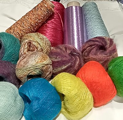 定番のウール100%の毛糸からシルクやアルパカ、段染め毛糸の他、ストレッチやニット生地、先染め生地など