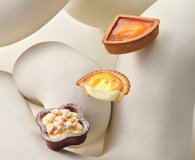 北海道産マスカルポーネチーズムースに、やさしい甘さのミルクソースを重ねたミルク感たっぷりな味わいのチーズタルト。