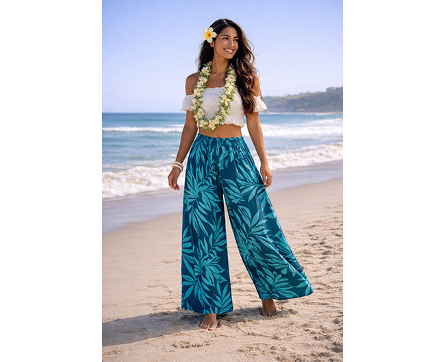 ハワイ気分で楽しむ軽やかワイドパンツ 10,450円
