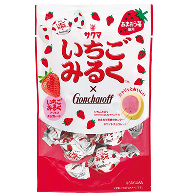 長く愛される〈サクマ〉の「いちごみるく」がチョコレートに変身。キャンディブリッター(クラッシュしたキャンディ)をあまおう苺味のセンターに混ぜ込んだ、シャリっとした食感が心地よいトリュフチョコレートです。